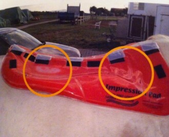 Kontrolle der Sattelpassform in Bewegung unter dem Reiter in Schritt, Trab und Galopp. Mit Hilfe dieses Sattelpads, das mit einem thermosensitiven Gel gefüllt ist, lässt sich die Passform Ihres Sattels überprüfen.